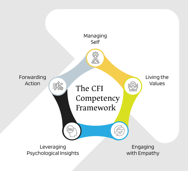 CFI has a coach competency framework which defines the 22 competencies that coaches need to master. These 22 competencies are across 5 themes forms the basis for the design of PGPEC and all our continuing professional development efforts.